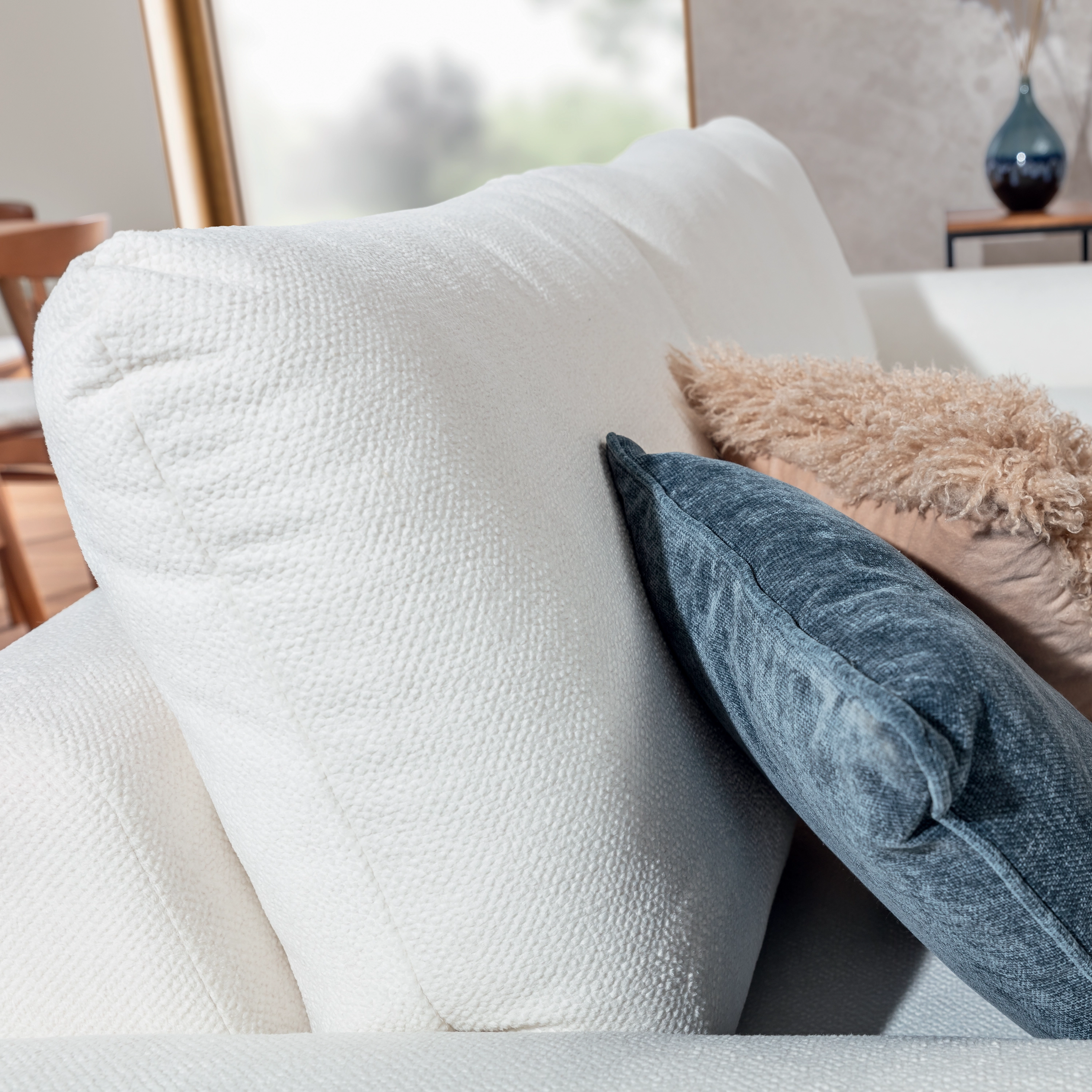Wyjątkowy styl sofy Dionizos podkreślają subtelne przeszycia na siedziskach oraz oparciach, które nadają jej nowoczesnego i eleganckiego charakteru. Te delikatne detale doskonale dopełniają prostą bryłę mebla, dodając mu klasy i wyrafinowania. Sofa Dionizos świetnie komponuje się zarówno w nowoczesnych, jak i klasycznych aranżacjach wnętrz, a także znakomicie współgra z resztą mebli z kolekcji Dionizos.
