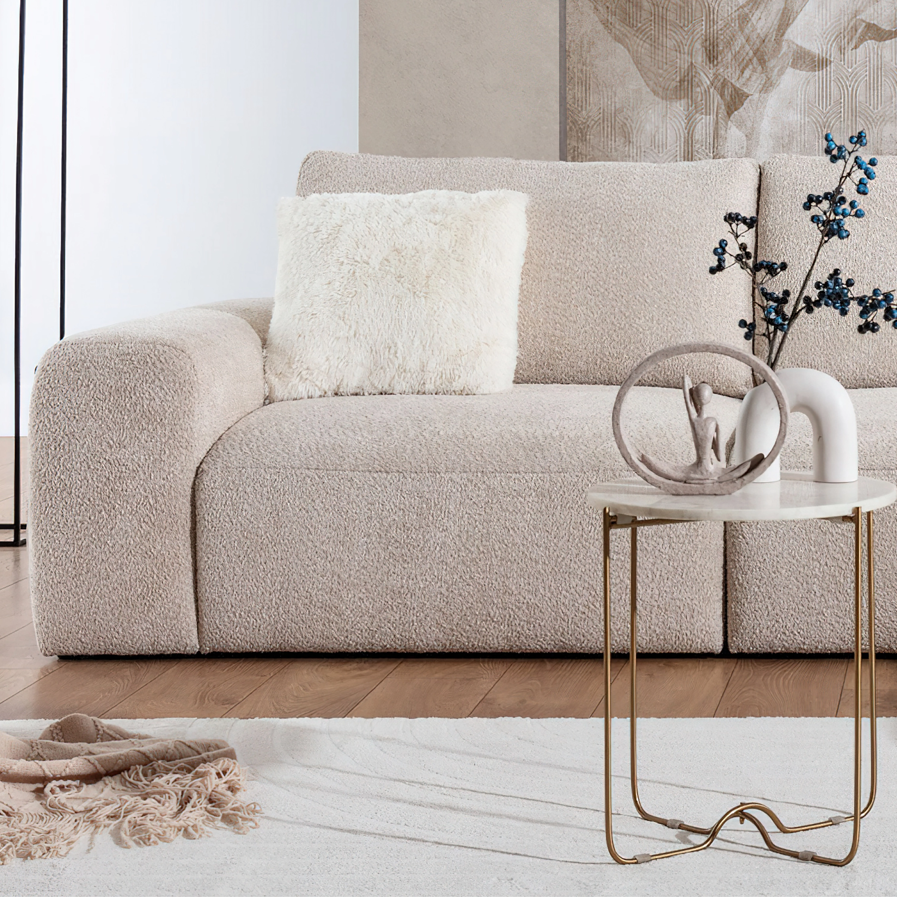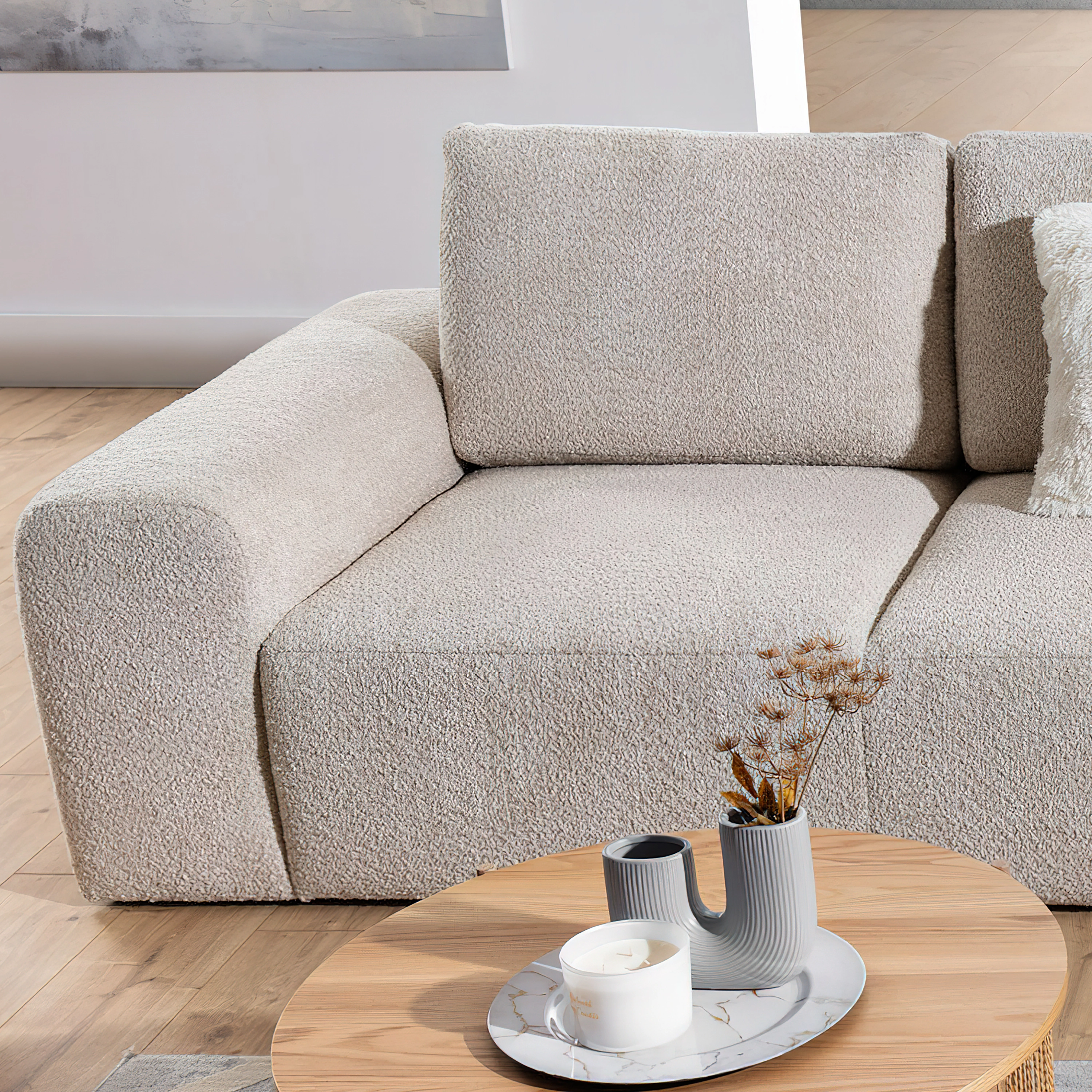 Wysokiej jakości tkanina typu boucle, która cechuje się charakterystycznym, modnym splotem oraz niezwykłą delikatnością i odpornością na ścieranie. Tkanina ta jest łatwa do czyszczenia i dostępna w aktualnych trendach kolorystycznych, co pozwala na tworzenie spójnych i nowoczesnych aranżacji, a jednocześnie jest bezpieczna dla zdrowia człowieka dzięki pozbawieniu alergenów i szkodliwych substancji. Gramatura 580g/m2, skład 100% PES, skłonność do pillingu 4, odporność na promienie UV 4. ![]()