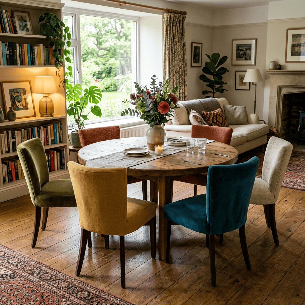 Różne kolory krzeseł przy jednym stole – jak łączyć barwy z klasą?