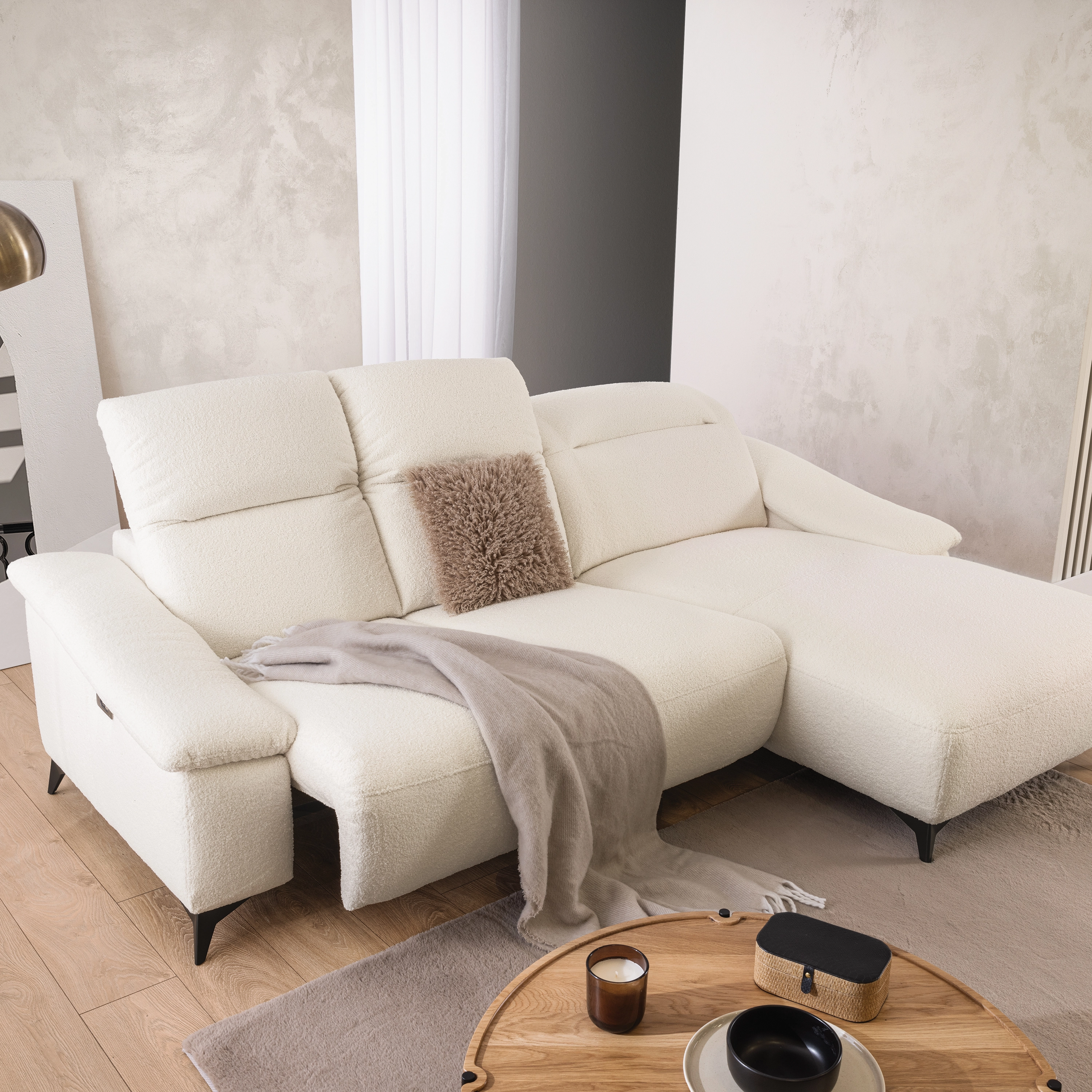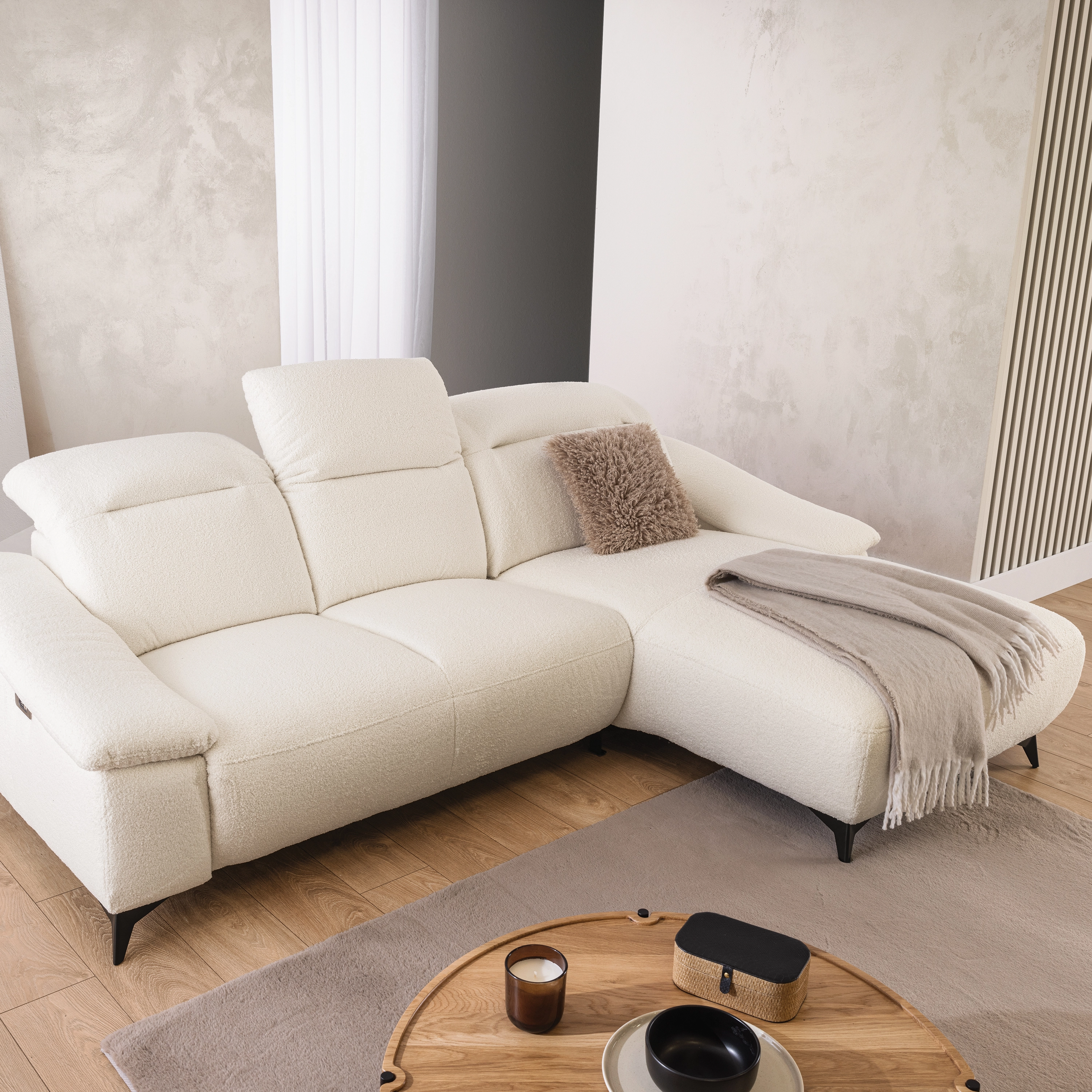 Wysokiej jakości tkanina typu boucle, która cechuje się charakterystycznym, modnym splotem oraz niezwykłą delikatnością i odpornością na ścieranie. Tkanina ta jest łatwa do czyszczenia i dostępna w aktualnych trendach kolorystycznych, co pozwala na tworzenie spójnych i nowoczesnych aranżacji, a jednocześnie jest bezpieczna dla zdrowia człowieka dzięki pozbawieniu alergenów i szkodliwych substancji. Gramatura 580g/m2, skład 100% PES, skłonność do pillingu 4, odporność na promienie UV 4. ![]()