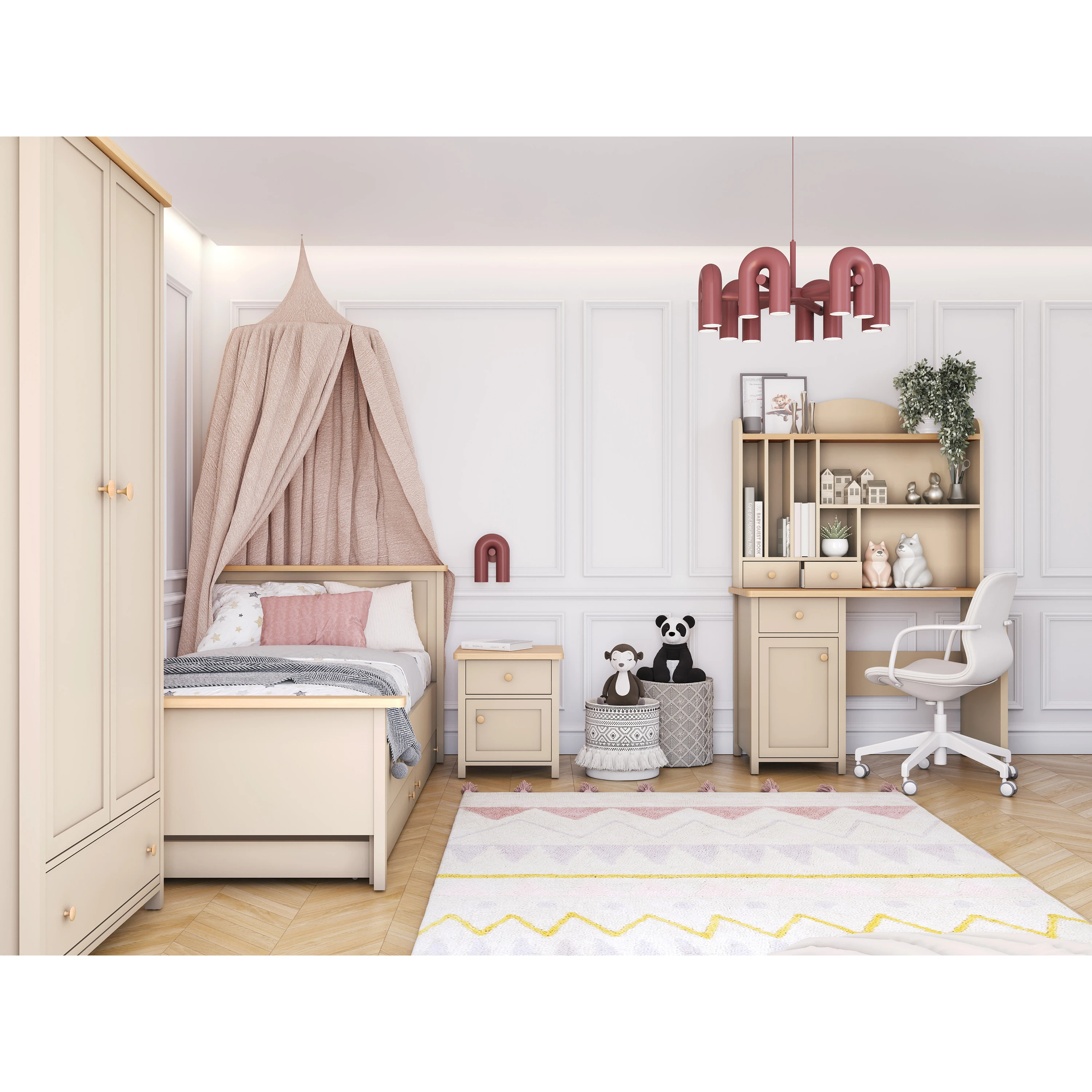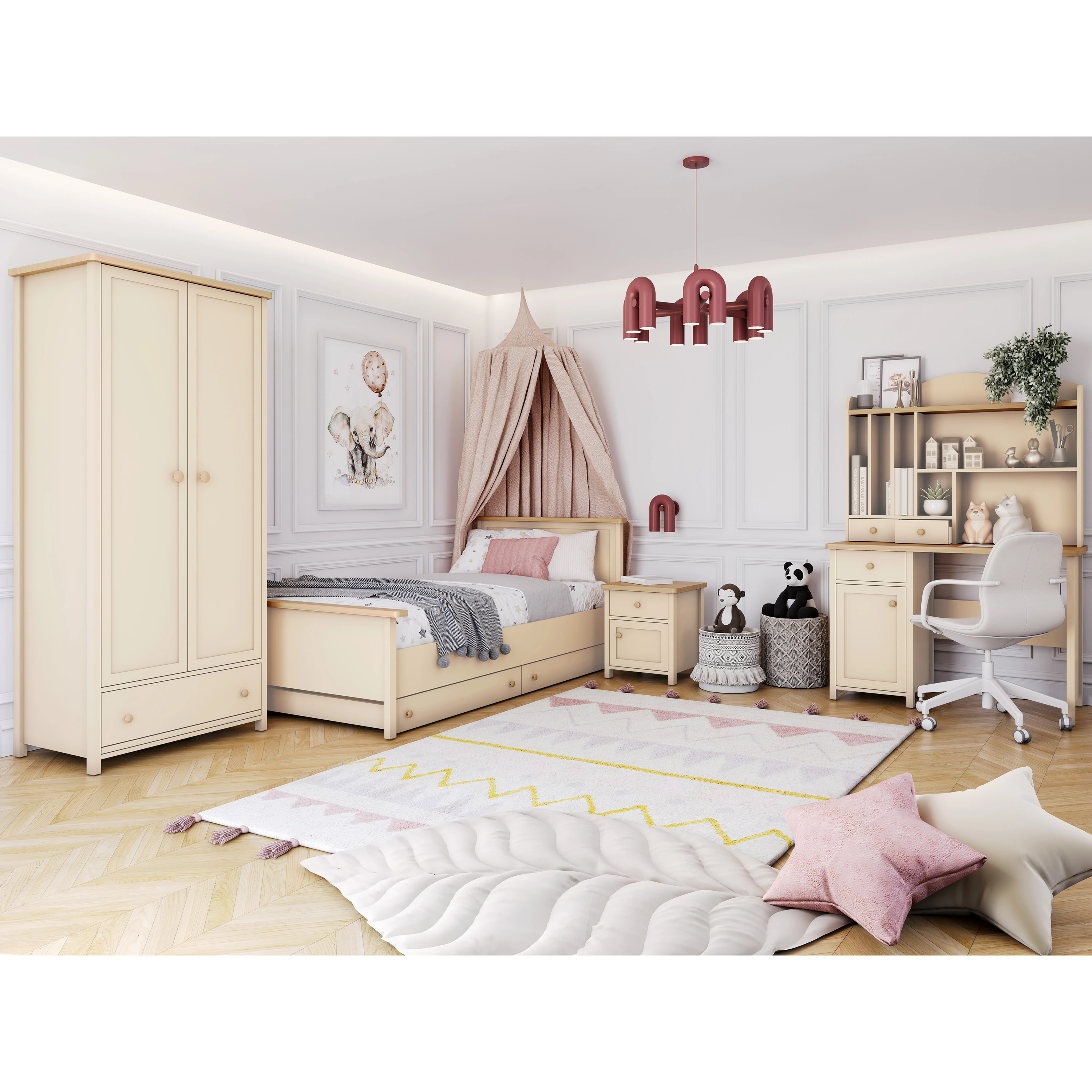 Dwudrzwiowa szafa stworzona z myślą o pokojach dziewcząt w każdym wieku lubiących romantyczny styl.